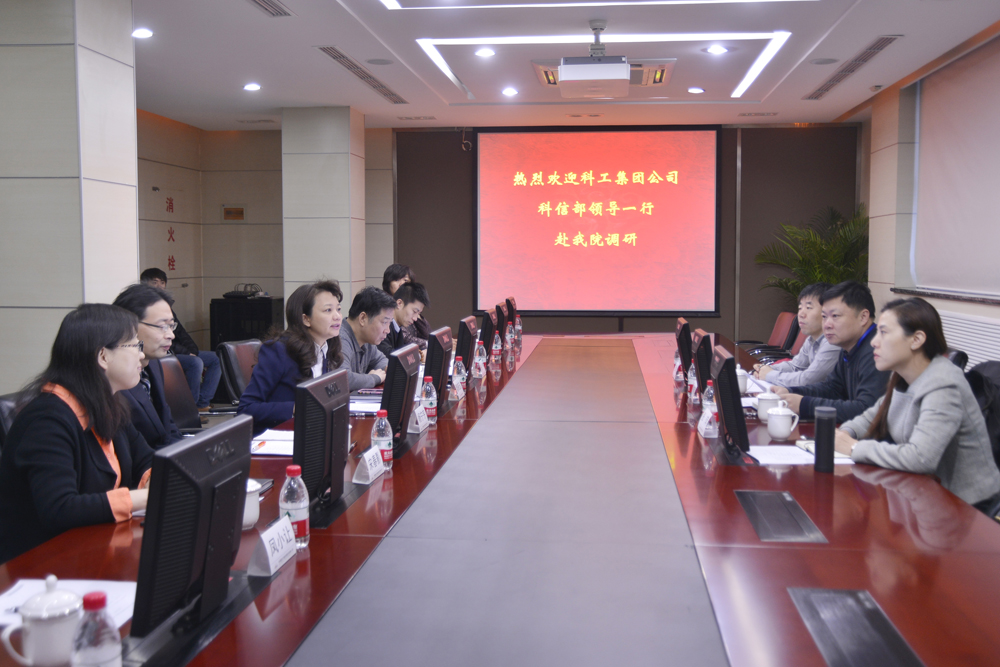 12月16日,航天科工集团公司科信部副部长尹晓晖一行莅临我院调研指导。科工集团公司科信部信息化工作处处长张萍、网络管理处处长王鸿志陪同调研;院副总经理、CIO窦晓玉,院信息化副总师朱宇、杨宁宇及有关领导参加会议。