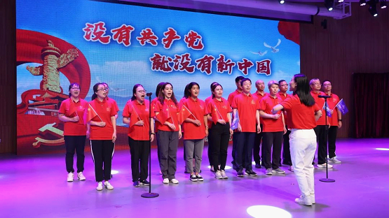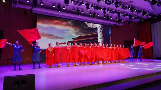 最后,全体人员挥舞着手中的国旗和司旗,与离退办舞蹈队共同表演了歌曲《再唱山歌给党听》,将活动氛围推向了最高潮。
