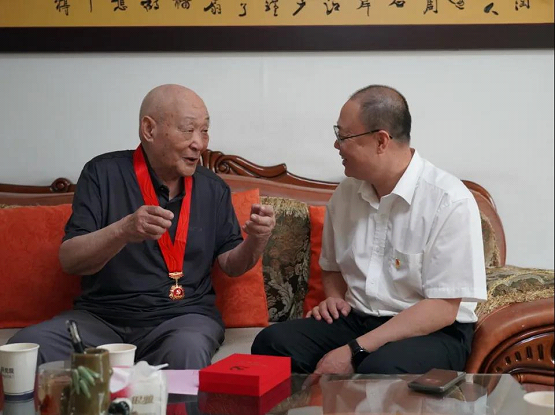 6月28日,航天建设党委书记、董事长高峰到全国离退休先进个人、退休老干部林家丰家中,亲切询问老人的身体情况,与他畅谈航天建设发展,介绍了“十四五”开局之年取得的成绩,感谢他为国家、为航天建设作出的贡献,并代表航天建设党委向老人致敬,祝愿他身体健康。林家丰老人对党组织长期以来给予的关怀表示衷心感谢,为党的百年华诞送上祝福,祝愿航天梦、强军梦、中国梦早日实现。