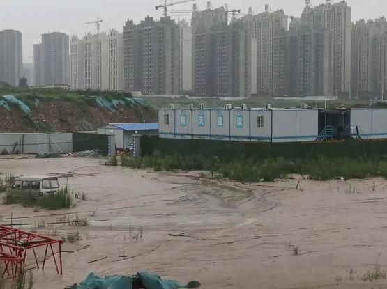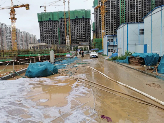 目前,河南航建在郑州区域的多个项目存在积水严重问题。项目部正在对受雨水浸泡的设备基础、部分周转材料进行排水处置;对于项目外围道路积水严重情况,已组织专人进行围墙、道路封堵,防止雨水倒灌;对部分受雨水灌入的基坑作业项目进行安全隐患排查,安排多台高功率污水泵进行排水。针对受本次降雨影响的承建项目,项目部已启动应急预案,启动24小时轮班值守机制,除应急救援人员进行排水抢险外,项目其他人员撤离至安全区域。