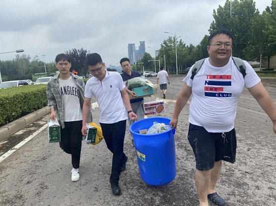 “赶紧去附近的餐馆、超市,买些晚饭和食品,不能让大家饿着。”政工人事部和办公室员工自觉行动起来。18点左右,后勤保障团队紧急在附近的餐馆里打包了40多份面,让大家“吃饱不想家”。