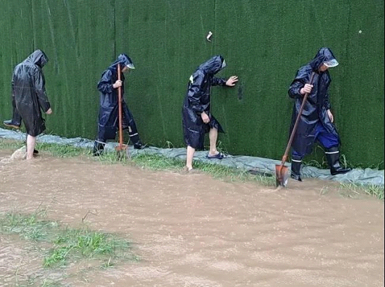 在项目一线,党员干部、团员青年带头组建抢险突击队和险情观测组,大家冒着大雨,同心协力,启动24小时轮班值守机制,连续作战。在积极开展排水抢险的同时,密切关注气象预报,确保信息畅通,备足备全物资。