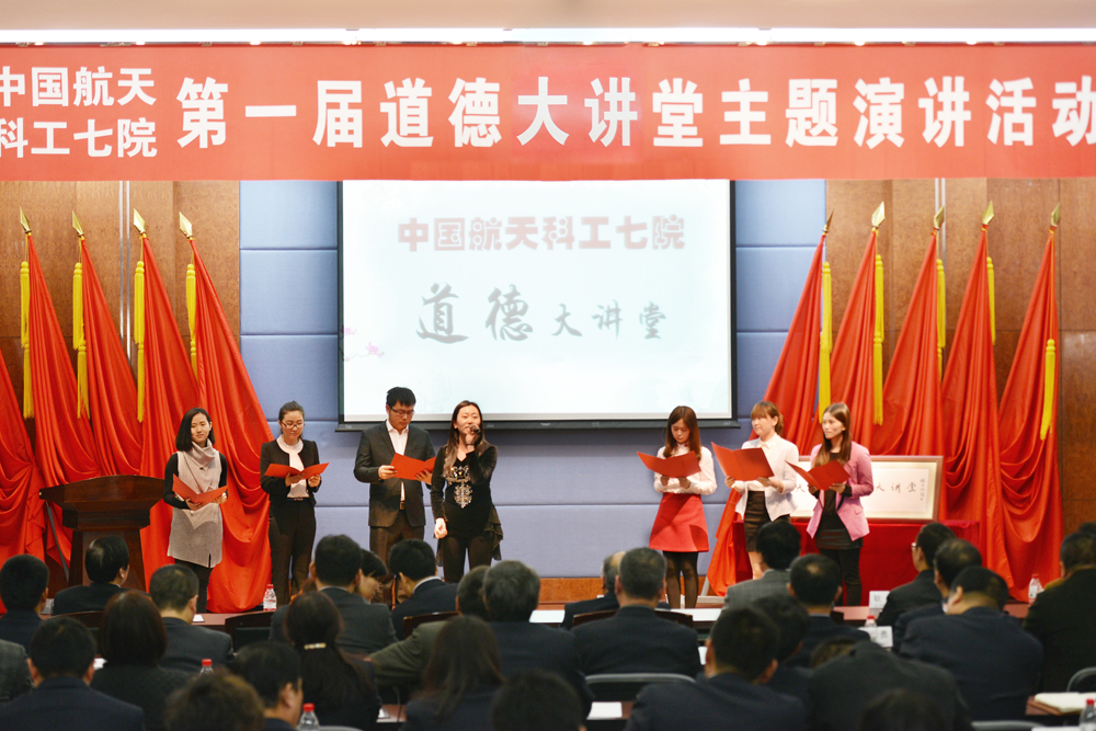 七院董事长、党委书记于喜国说道:“在50年的发展历程中,七院一直秉承航天优良传统、弘扬航天三大精神,已经形成了具有航天建设特色的企业文化体系。但随着发展速度不断增快,规模不断扩大,七院的发展趋势也日趋多元,这对企业文化建设提出了更高的要求。推出道德大讲堂,就是为了不断提高企业精神文明建设,为七院的进一步发展奠定扎实的思想基础。”