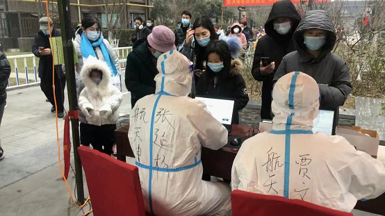 1月4日凌晨2点,在收到决战清零的任务后,全体成员第一时间出征,于4点前集结完毕,奔赴战疫一线。他们不提要求、不谈条件、不摆困难,不论白天还是黑夜,随时待命、闻令而动,以顽强的作风、过硬的素质和坚强的战斗力,连续奋战在抗疫斗争最前线。他们一心护万家平安,用实际行动完美诠释了航天精神。