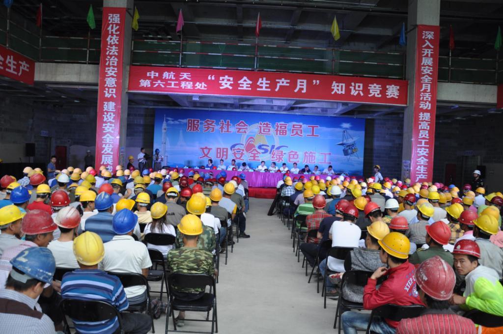 为全面贯彻落实七院关于“安全生产月”和“安全生产万里行”的工作部署,6月10日上午,99号楼项目举行了“安全生产月”知识竞赛活动。海淀区建委、海淀区安监局、永定路街道、二院、七院、中航天公司等有关部门领导出席了此次活动。同时,活动也得到广大施工一线劳务人员的积极参与,共计22支分包队伍近300多名劳务人员参加了现场竞赛。