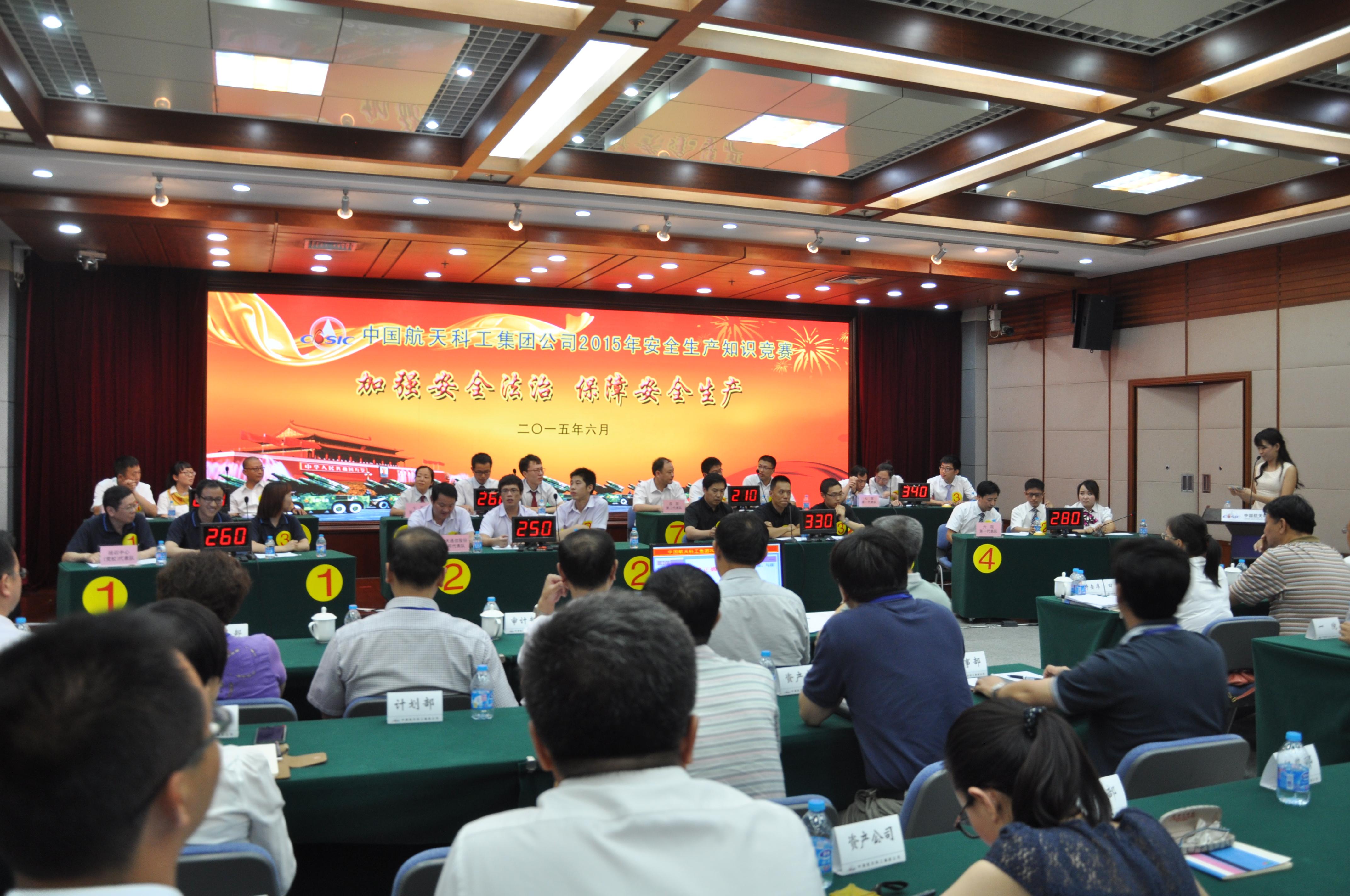 科工集团2015年安全生产知识竞赛分为半决赛和决赛两个阶段,共有包括七院在内的17个二级单位的26支代表队参加,参赛队伍数量为科工历届比赛中最多的一次。我院派出了以中航天公司为班底组建的七院一队(领队:王革新,队员:王爱军、孙莹莹、李明亮)和以陕西航建公司为班底组建的七院二队(领队:周期,队员:李晖、许应虎、洪泽涛)两支代表队参加。在上午举行的半决赛中,经过个人必答题、小组必答题、抢答题环节的激烈角逐,七院一队、二队均强势晋级到共8支代表队参加的决赛。