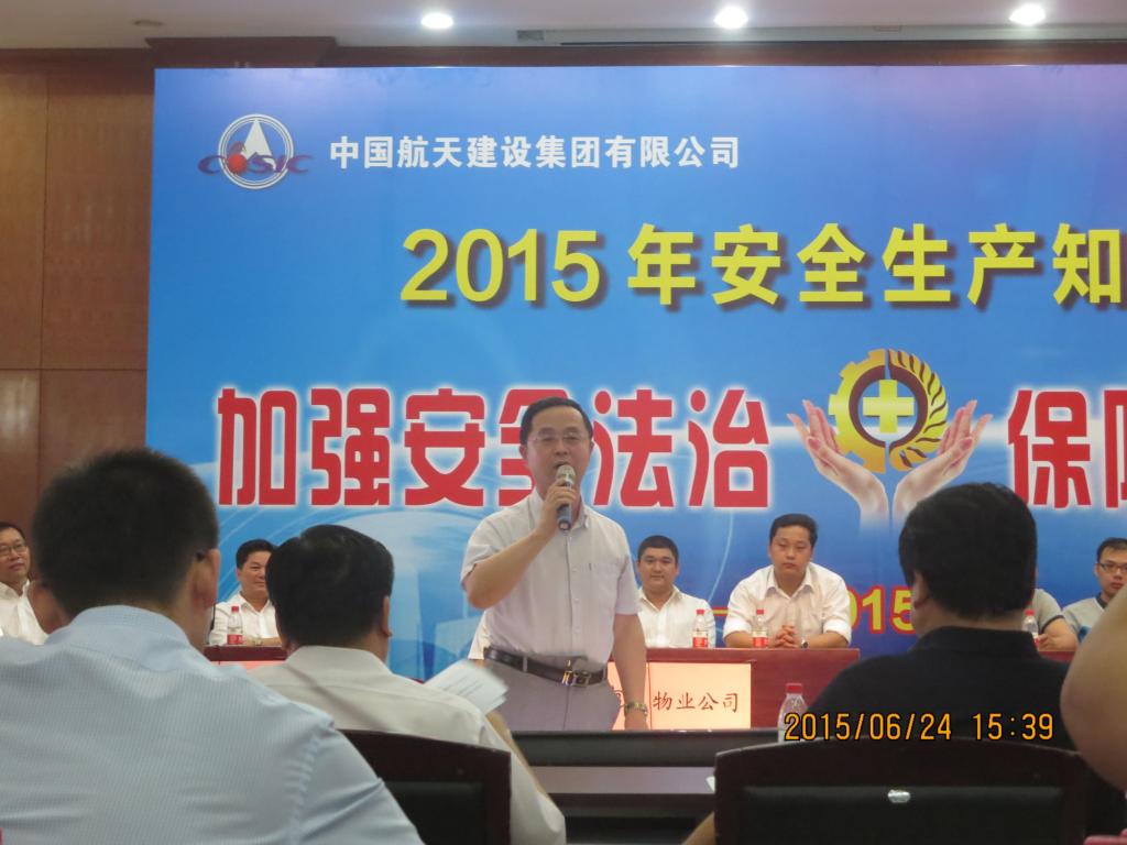 6月24日,以“加强安全法治,保障安全生产”为主题的院2015年安全生产知识竞赛在三楼礼堂成功举办。院总经理、党委副书记高峰,科工集团公司安全保障部安全生产总监牛东农,院安全生产总监、科技委副主任.副总工程师袁有志,院副总工程师、科技委总师常委安寅强及安全保障部、党群工作部、安全评价中心相关负责人参加竞赛,并担任评委。