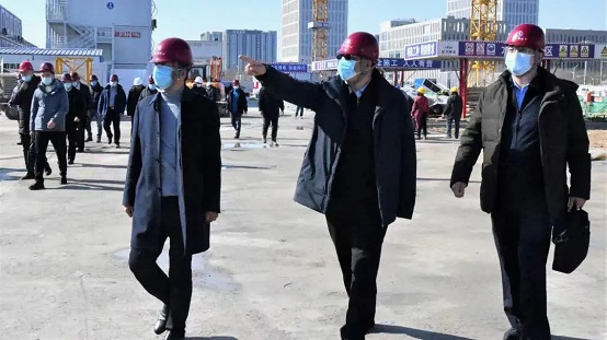 陈立明、施毅一行对项目现场施工作业情况进行了检查,就施工进度、安全生产、疫情防控等工作提出了意见和要求。