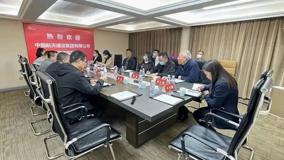 航天建设党委副书记、总经理李治国,副董事长、副总经理窦晓玉与讯腾智科董事长刘向升一行交流座谈。