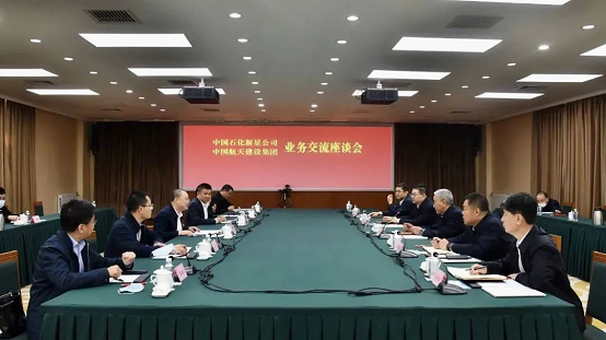 航天建设党委副书记、副总经理杨帆与新星石油公司执行董事、党委书记党力强一行交流座谈。