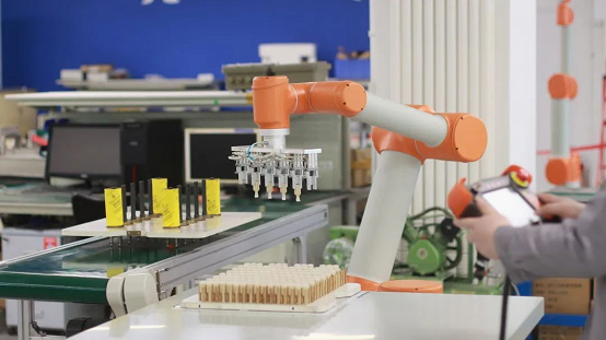 该设备采用两台PR10EX防爆机器人,一台负责安装卡子,一台负责安装药盒,通过上位机控制器与机器人通讯,实现组装生产过程的信号交互和分工协作。设备节拍达到每分钟组装生产10个以上,是人工组装生产的数倍,大幅度提升了生产效率和产品一致性。