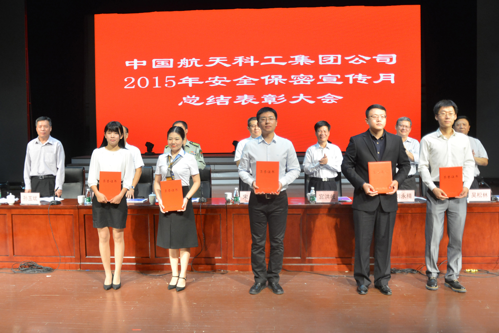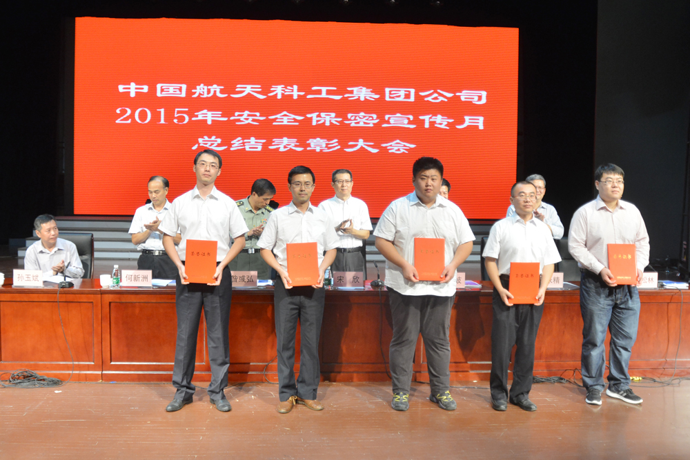 9月21日,中国航天科工集团公司“2015年安全保密宣传月总结表彰大会”在二院礼堂隆重召开。会上,对安全保密宣传月活动进行了全面总结并对安全保密优秀论文、演讲比赛获奖个人和安全保密宣传月优秀组织奖获奖单位进行了表彰。