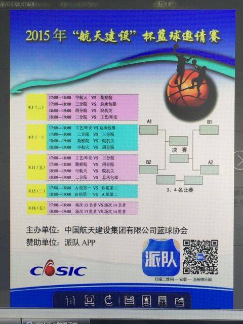 雨后秋日,空气爽朗。由七院篮球协会举办的2015年“航天建设杯”篮球邀请赛在七院工会的指导下,于9月1日在丰台体育中心拉开帷幕。本次比赛是七院首次由篮球协会全权承办的群众性体育活动。共吸引8支球队100余名职工积极参与,赛制分为小组循环赛、半决赛、决赛三个阶段,最终角逐出团体前三名,整个赛程将持续18天。