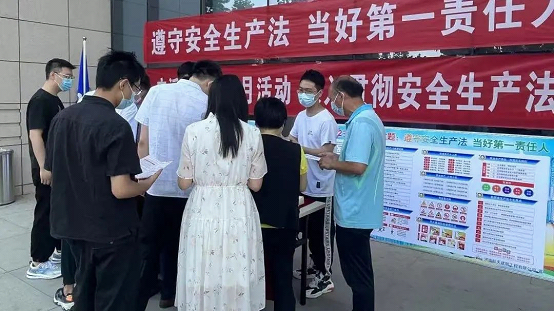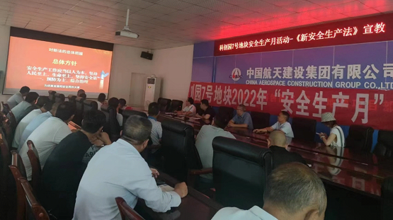河南航建组织员工观看《生命重于泰山》《安全生产隐患警示录》。开设安全宣传咨询台,循环播放《安全生产15条措施》专题片。向员工及市民发放安全宣传材料,讲解安全生产常识、安全生产最新政策及法律法规,宣传安全发展理念,并组织安全知识猜谜活动。