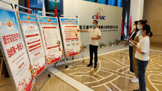 航天设计院对西安沣东智能制造创新园项目疫情防控和安全生产措施落实情况开展安全检查。组织员工观看《生命重于泰山》专题片,设计制作“安全生产月”主题海报和展板,发放张贴宣传品,悬挂条幅。在全国“安全宣传咨询日”活动期间,发放自制安全宣传折页、宣传单,普及日常安全知识和应急救援相关内容。组织项目部在驻地宣传安全生产政策法规、应急避险和自救互救方法。