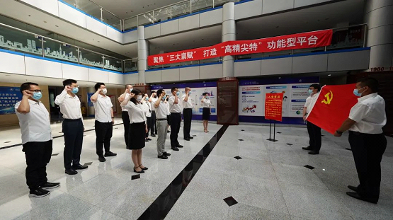 全体党员重温入党誓词,面对党旗庄严宣誓。 |
