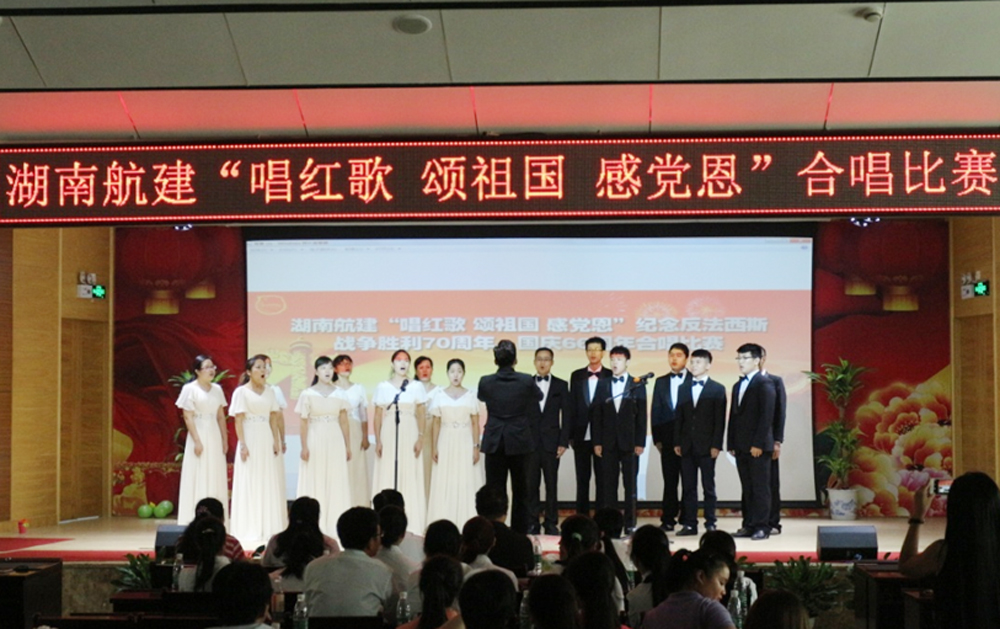 9月28日,七院湖南航建公司工会、团委主办了以“唱红歌颂祖国 感党恩”为题的纪念反法西斯战争胜利70周年、国庆66周年合唱比赛。该公司临时党委书记张明星,副总经理、临时纪委书记蒋征,总会计师、工会主席王葆华,总经济师黎聪颖,副总会计师伍军,出席并担任了本次大赛评委。