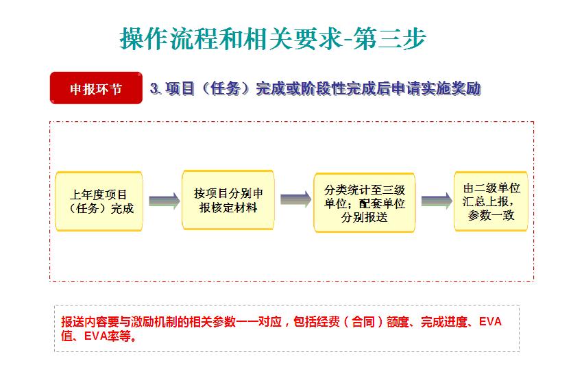 二、政策指导 为了能更有效的与政策衔接和落实,单位需要有意识的进行多项准备工作。 (一)逐步建立按照项目为单位的核算指标体系。要按项目统计EVA等指标,建立台账记录并对项目信息进行精细化管理。