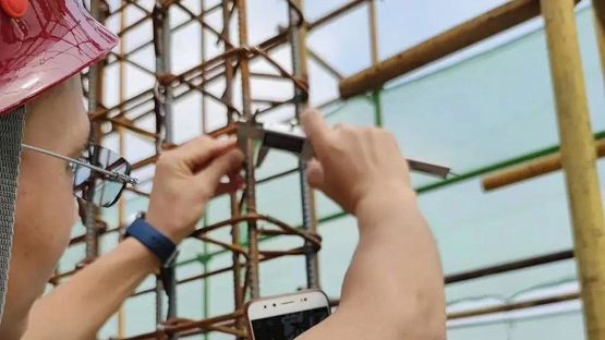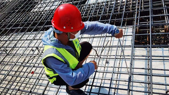 中瑞公司绵阳市东林镇环境改善项目部成员,认真检测施工面每一层钢筋绑扎情况,用汗水“蒸”战高温,保质量、稳进度。