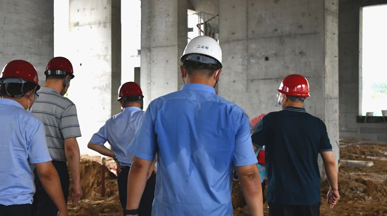 中航天公司长阳航天城电子科技园项目部成员,认真检查各处细节,从现场回来工作服上已是大片汗渍,彰显了“严慎细实”的工作作风。