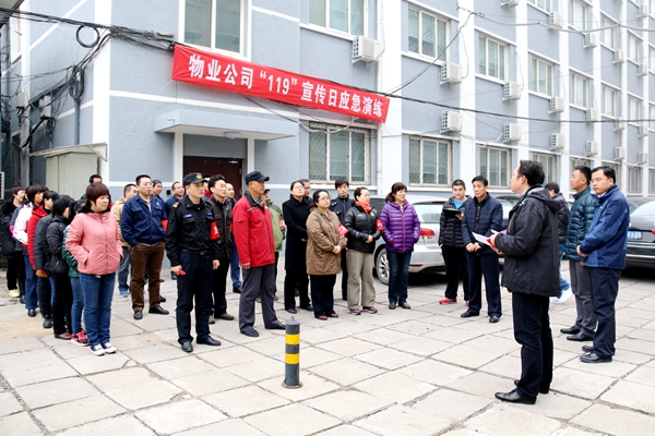 为保障疏散演练活动安全有序,物业公司制定了消防疏散演练方案,成立了以物业公司总经理赵庆国为总指挥、副总经理刘凯为总调度的演练指挥部。演练分为操作演示和疏散演习两部分。下午13时活动开始,公司救援灭火小组成员分别演示了灭火器、消防水带连接和消防手报按钮等使用方法,并宣讲了宿舍防火注意事项、火场逃生等消防安全知识。