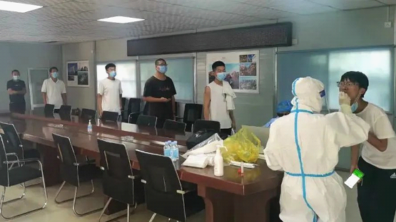 全员每日进行核酸检测,进入现场必须佩戴口罩,注意保持安全距离。对入场人员进行信息登记、测温,查验健康码和行程码。对宿舍、食堂、浴室、厕所等重点部位和人员密集场所,实行每日消毒和通风处理。加强生活区、办公区日常卫生保洁,及时清扫卫生死角,定期进行环境消毒并建立台账,营造良好卫生环境。