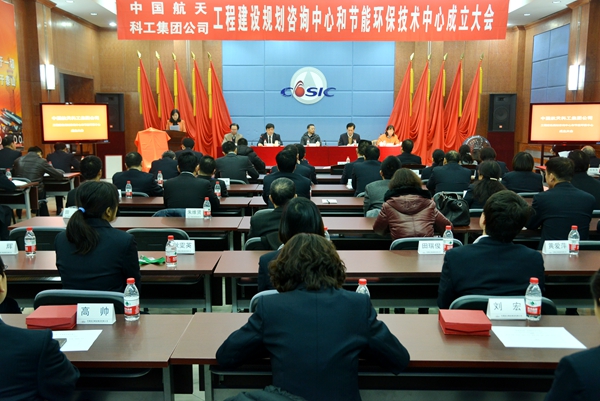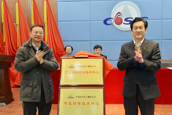 首先由张燕代表集团公司宣读《关于设立中国航天科工集团公司工程建设规划咨询中心和节能环保技术中心的通知》文件,七院党委副书记、纪委书记、工会主席李秀芬宣读“两个中心”班子成员聘任文件。随后,集团公司刘石泉和于喜国共同为“两个中心”揭牌,“两个中心”正式启动。