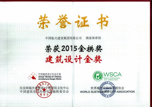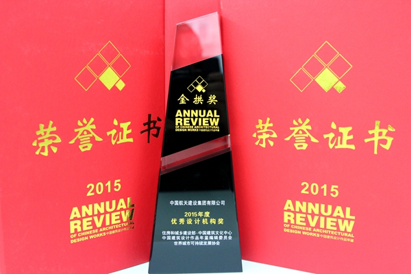 金拱奖由住建部·中国建筑文化中心、中国建筑设计作品年鉴编辑委员会、世界城市可持续发展协会共同颁发具有建筑设计行业有影响力的奖项之一,是为推动我国建筑事业的繁荣和发展,进一步鼓励广大建筑师的创作热情和探索精神而设立的。我院同时获得2015年度优秀设计机构奖,为我院在建筑设计行业内的品牌和知名度的提高做出了贡献。