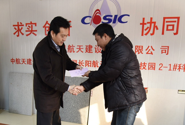 1月27日,董事长、党委书记于喜国,安全总监袁有志,党群部、安保部一行,对中航天科技一院12所惯导楼、龙华公司长阳2-1项目进行了慰问,并向奋战一线的职工送上新春祝福。于喜国要求各施工单位贯彻落实《国务院办公厅关于全面治理拖欠农民工工资问题的意见》,切实保障职工合法权益。要求各施工项目部妥善安排好节日期间的值班和安全保卫工作,注意宣传、注意形象,努力塑造航天建设精品工程。