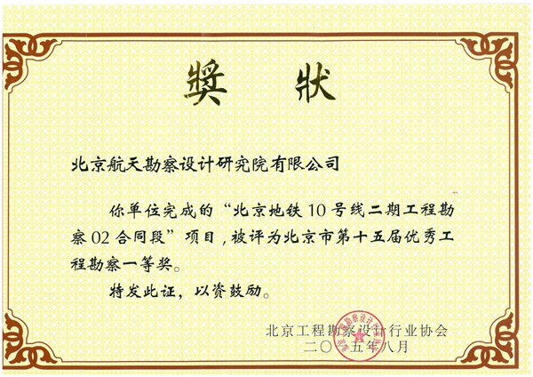 近日,由航天建设完成的“北京地铁10号线二期工程勘察02合同段”等三个项目再获殊荣。2016年1月,由北京工程勘察设计行业协会主办,北京市规划委员会监督指导的“北京市第十八届优秀工程设计和第十五届优秀工程勘察奖评选活动”举行了颁奖大会。中国航天科工七院荣获优秀工程勘察综合奖一等奖一项,优秀工业工程设计综合二等奖两项。