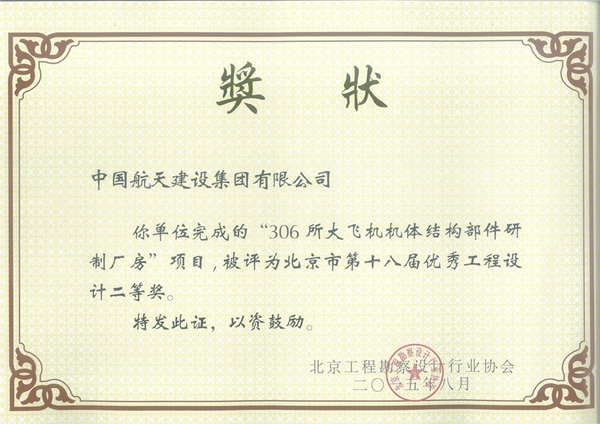 此次北京市优秀工程勘察设计奖(省部级)评选,共分“工程勘察类”、“建筑设计类”、“市政公用工程类”、“工业工程类”、“勘察与设计软件类”、“标准及标准设计类”六个大类,共有81家单位的 586个项目申报。经由北京工程勘察设计奖评审委员会初评,复评,最终我院北京航天勘察院完成的“北京地铁10号线二期工程勘察02合同段”项目荣获优秀工程勘察综合奖一等奖;四分院主持完成的“东航昆明新机场维修基地”项目及三分院主持完成的“306所大飞机机体结构部件研制厂房”项目均荣获优秀工业工程设计综合奖二等奖。
