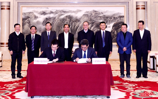 2月23日下午,中国航天科工七院与宁波象保合作区在宁波市政府签署共建宁波航天智慧科技城投资合作协议,航天科工集团公司总经理助理(资深专务)于滨、宁波市市长卢子跃出席并见证签约,七院董事长、党委书记于喜国、副总经理李治国及宁波市副市长王剑侯、市政府秘书长王建社等领导参加签约活动。签约前,于滨与卢子跃进行会谈,对双方全面合作表示支持和欢迎,并祝愿项目建设推进顺利、获得圆满成功。