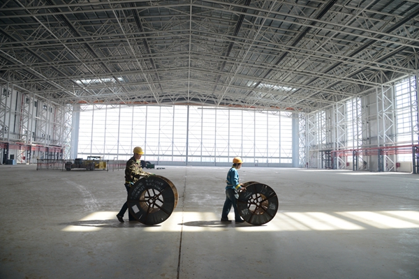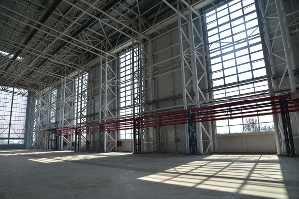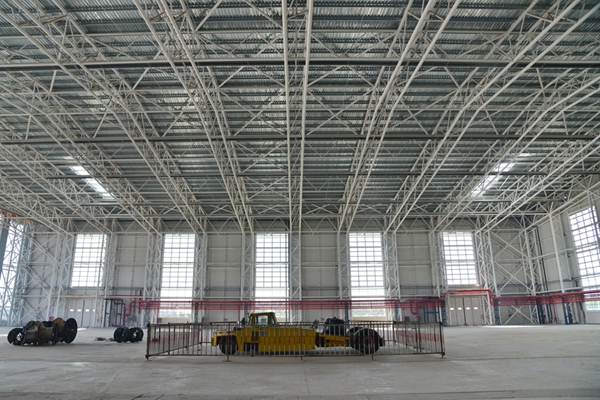 近日,由中国航天科工七院四分院设计的东航北京基地机务维修区项目基本完成建筑物的施工。该项目位于北京顺义区空港物流基地,总建筑面积27120.78平方米,包括维修机库(含附楼)、航材库、化工品库、特种车库、机务办公及培训楼、航线楼、食堂、动力站等建筑。东航北京基地目标定位为承担空客A340-600或空客330和320系列飞机的航线及A检维修。维修机库建筑总宽90m,其中维修机库大厅宽80m,进深102.6m(含5.4m宽门库),建筑高度24.75m,机库大厅单层,副楼4层;维修机库总建筑面积12549.17平方米,机库大厅面积8291.70平方米机库内的设备管道排列有序,色彩鲜明,充满设计感。据悉,该机库是国内第一个管桁架钢结构机库。(文/四分院 摄/宿东) |