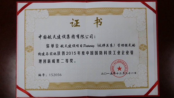 近日,在2016年度中国国防科技工业企业管理创新工作会议上,由七院三分院完成的《航天建设项目Partering(伙伴关系)管理模式的构建与实施》项目荣获“2015年度中国国防科技工业企业管理创新成果二等奖”。七院三分院院长马向东、刘薇等及七院发展计划部武晨、办公室李硕等九人荣获“管理创新成果个人二等奖”。这是七院在首次中国国防科技工业企业管理协会荣获二等奖。