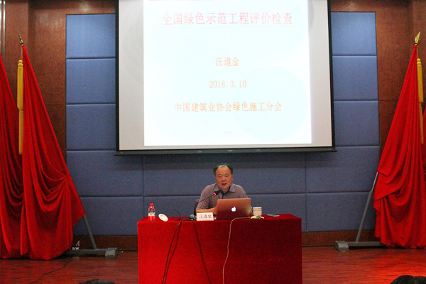 汪道金围绕建筑工程绿色施工评价标准、绿色施工评价支撑资料的收集和整理、全国建筑业绿色示范工程检查的基本规定和要求等内容,根据自己多年积累的经验,结合工程实例,由浅到深为大家进行了细致而生动的讲解。参会人员纷纷表示受益匪浅,对绿色施工的理论知识和实际操作有了深入的学习和了解。