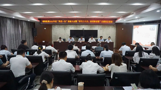 湖南航建举办2022年度“两优一先”表彰大会暨“学习二十大、奋进新征程”主题党日。党委领导讲授专题党课。全体党员重温入党誓词,表彰先进党支部及优秀共产党员、优秀党务工作者,受表彰代表进行交流发言。会上首次展播党员形象宣传片《有我》。