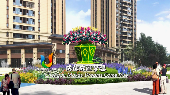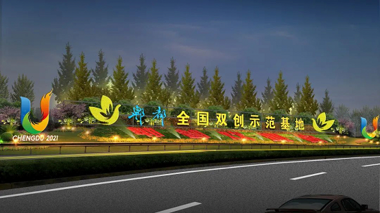 2019年成都市大运会环境提升工程启动,2020年西南分公司开始参与其设计工作。该工程包括赛事场馆大门美化、沿线道路提升、天桥提升、招牌提升、道路绿化等。在重要道路节点设计了大运会绿雕提升活动氛围,道路范围涉及蜀源大道沿线1公里和红光大道沿线8.9公里。