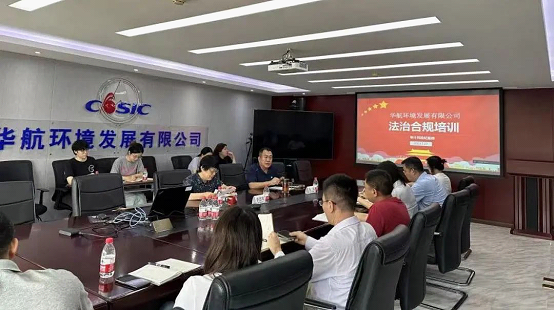 华航环境党委理论学习中心组学习党的二十大精神和习近平法治思想,举办法治合规培训,讲解《中央企业合规管理办法》,张贴海报宣传“五讲四要”依法治企新理念,所属单位组织学习《民法典》。