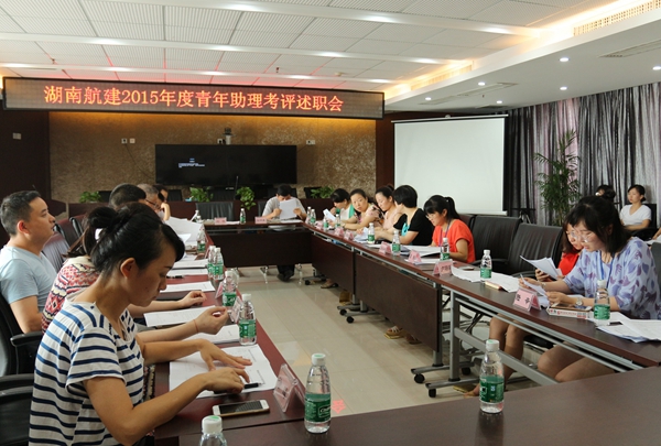 为全面、客观、准确评价湖南航建公司2015年度青年助理工作表现和工作业绩,充分交流工作经验和体会,肯定成绩,查找不足,改进工作,根据《湖南航天建筑工程有限公司青年助理实施方案(试行)》(航建团〔2015〕38号)中青年助理的考核办法,7月11日,湖南航建团委召集2015年度青年助理考评述职会,公司临时党委书记张明星及实施小组成员参加了会议。