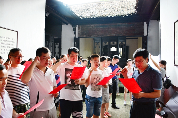 “我志愿加入中国共产党……对党忠诚,积极工作,为共产主义奋斗终身,随时准备为党和人民牺牲一切,永不叛党。”在李立三故居门前,张明星带领预备党员和发展对象庄严宣誓,全体党员以及入党积极分子,面对鲜红而又神圣的党旗,和新党员们一起重温《中国共产党入党誓词》,声音铿锵有力。