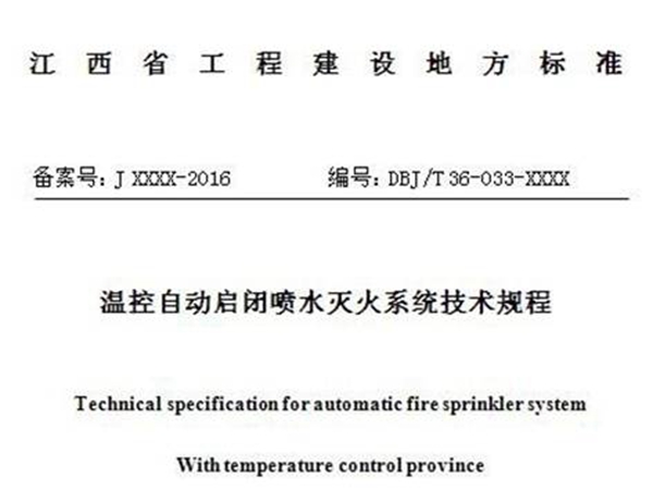 日前由中国航天科工七院主编的江西省工程建设地方标准《温控自动启闭喷水灭火系统技术规程》顺利通过江西省消防总队、江西省质量监督总局、江西省住建厅等部门联合评审,即将发布实施。