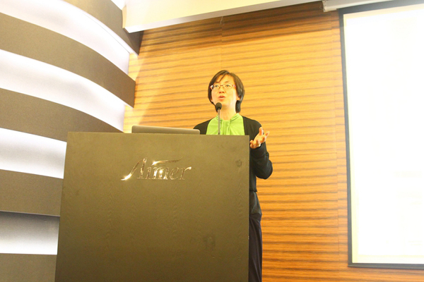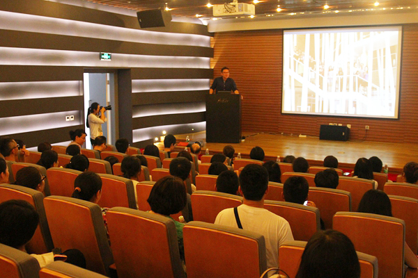在充满线条元素设计的动感爱慕时尚工厂会议厅,爱慕时尚工厂主创设计师、北京市建筑设计研究院高级工程师董灏为七院观摩设计师进行了爱慕时尚工厂建筑设计理念专题讲座,为大家介绍了爱慕时尚项目规划理念、建筑设计思路以及细节优化措施,也分享了设计过程中的经验教训。