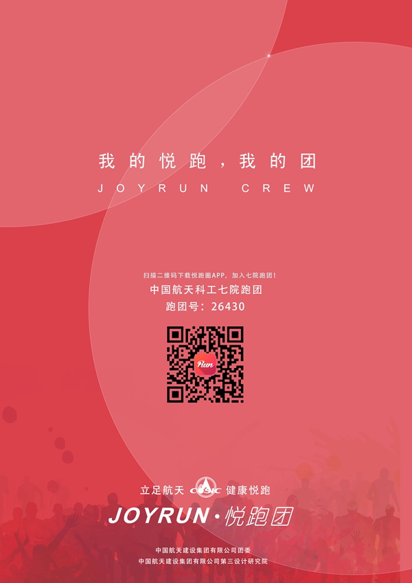 下载海报图片,扫描图片中二维码即可下载悦跑圈APP,加入中国航天科工七院跑团(跑团号:26430)。