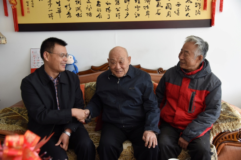 在纪颖逵家中,李治国亲切握着已93岁高龄老人的手,关切询问其健康状况和生活情况,嘱咐他多注意身体,愿老人家健康快乐的生活。