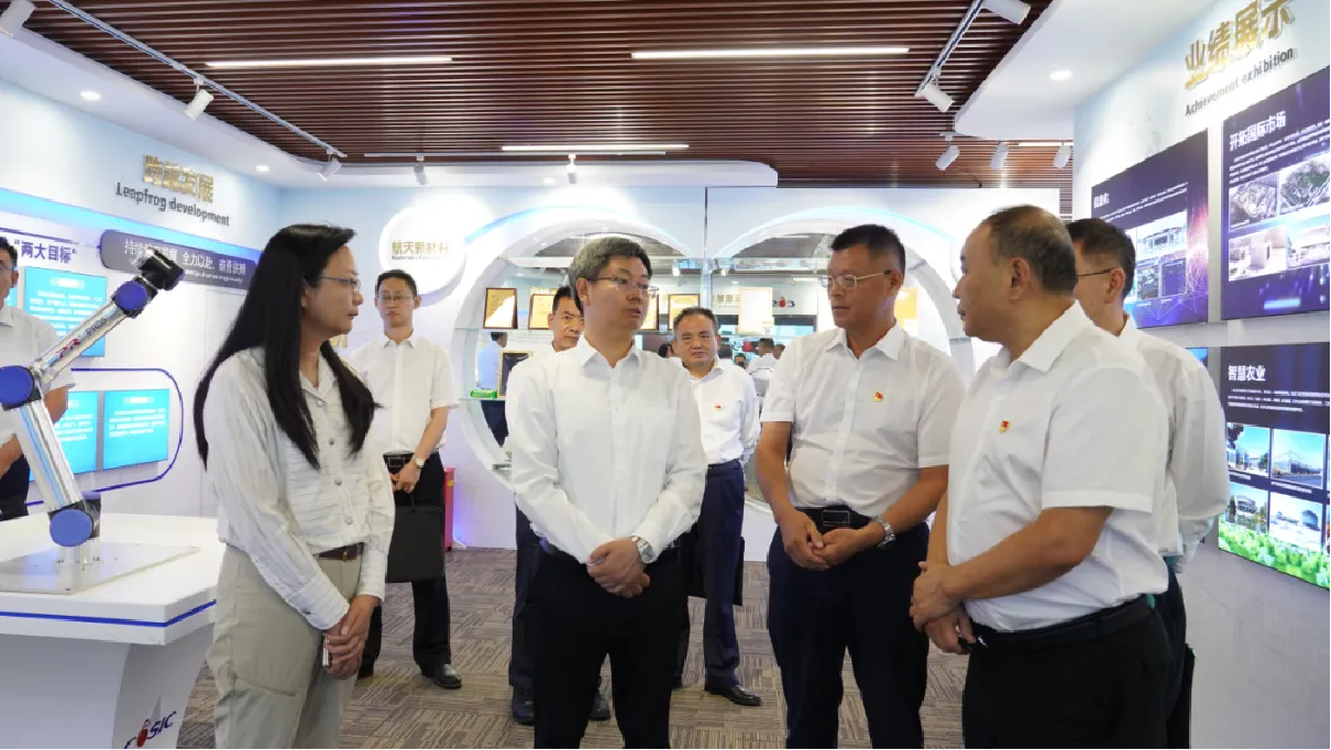 陈锡明一行走进航天建设所属航天设计企业展厅,详细了解企业历史沿革、关键核心技术及资质、市场拓展、产业发展、党建工作等基本情况。