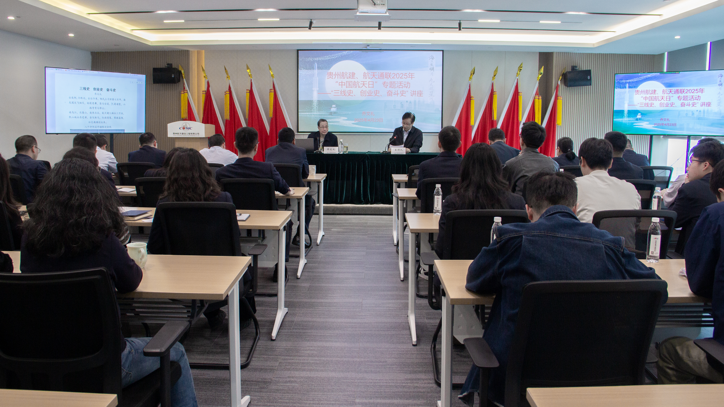 贵州航建携手航天通联举办传承三线精神主题活动,邀请曾任061基地党校副校长的乔文礼老前辈以《三线史 创业史 奋斗史》为题,深入剖析三线建设历史背景,介绍取得的伟大成就,并观看航天精神教育影片《横空出世-1999》,加深对航天精神与三线精神的理解。所属辽宁分公司参观“繁星请回答”中国航天科技展,激发职工干事创业热情。