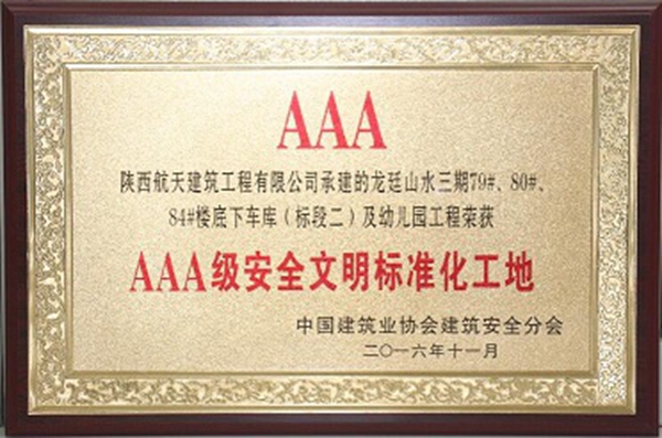 近日,七院陕西航建公司承建的龙廷山水三期工程荣获国家AAA级安全文明标准化工地,这也是七院荣获的第十一个国家级安全文明工地。