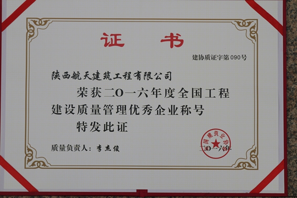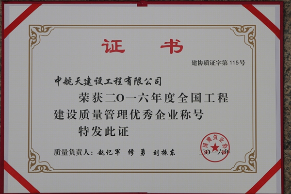 2016年,全国共有119家企业获“全国工程建设质量管理优秀企业”,我院独占两席! |