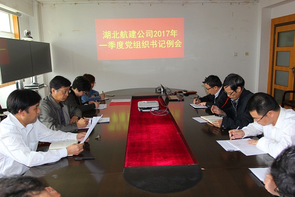 近日,七院湖北航建公司党委召开2017年第一季度党委书记例会。公司党委书记李德贵,党委副书记、纪委书记杨飞等相关人员参加了会议,会议由杨飞主持。