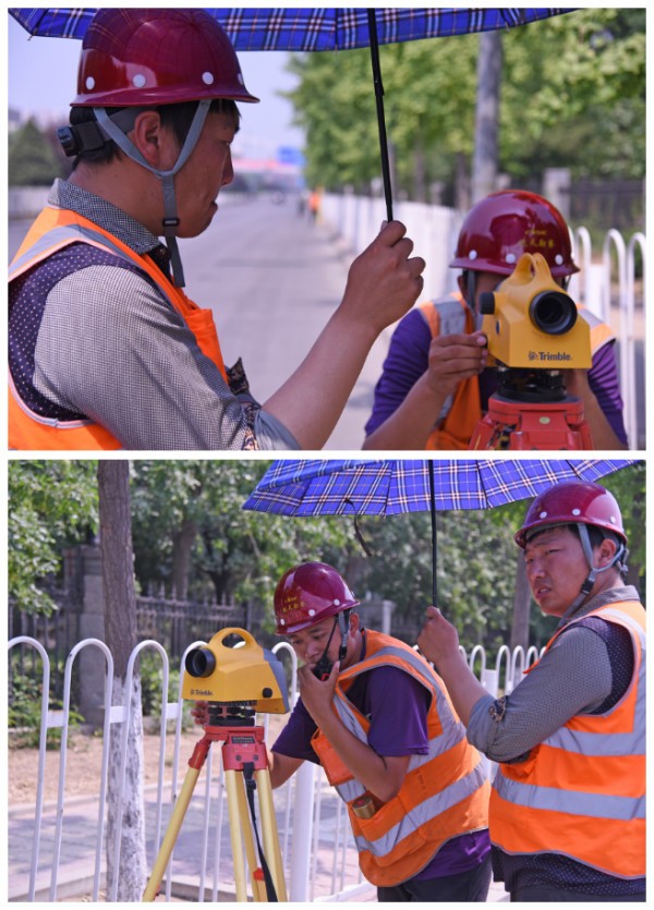 5月18日,来自航天建筑设计研究院有限公司勘察设计分院的工程师正在北京大兴区亦庄进行测量,北京亦庄新城现代有轨电车T1线已进场施工。